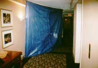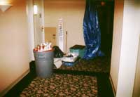 Discretion is important. Hotel hallway before start of biorecovery in room.